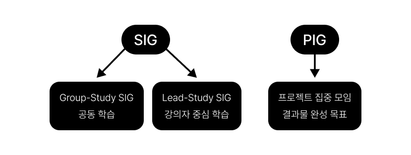 : SIG는 특정 주제에 관심 있는 동아리원이 모여 함께 같은 주제를 공부하는 SIG입니다.